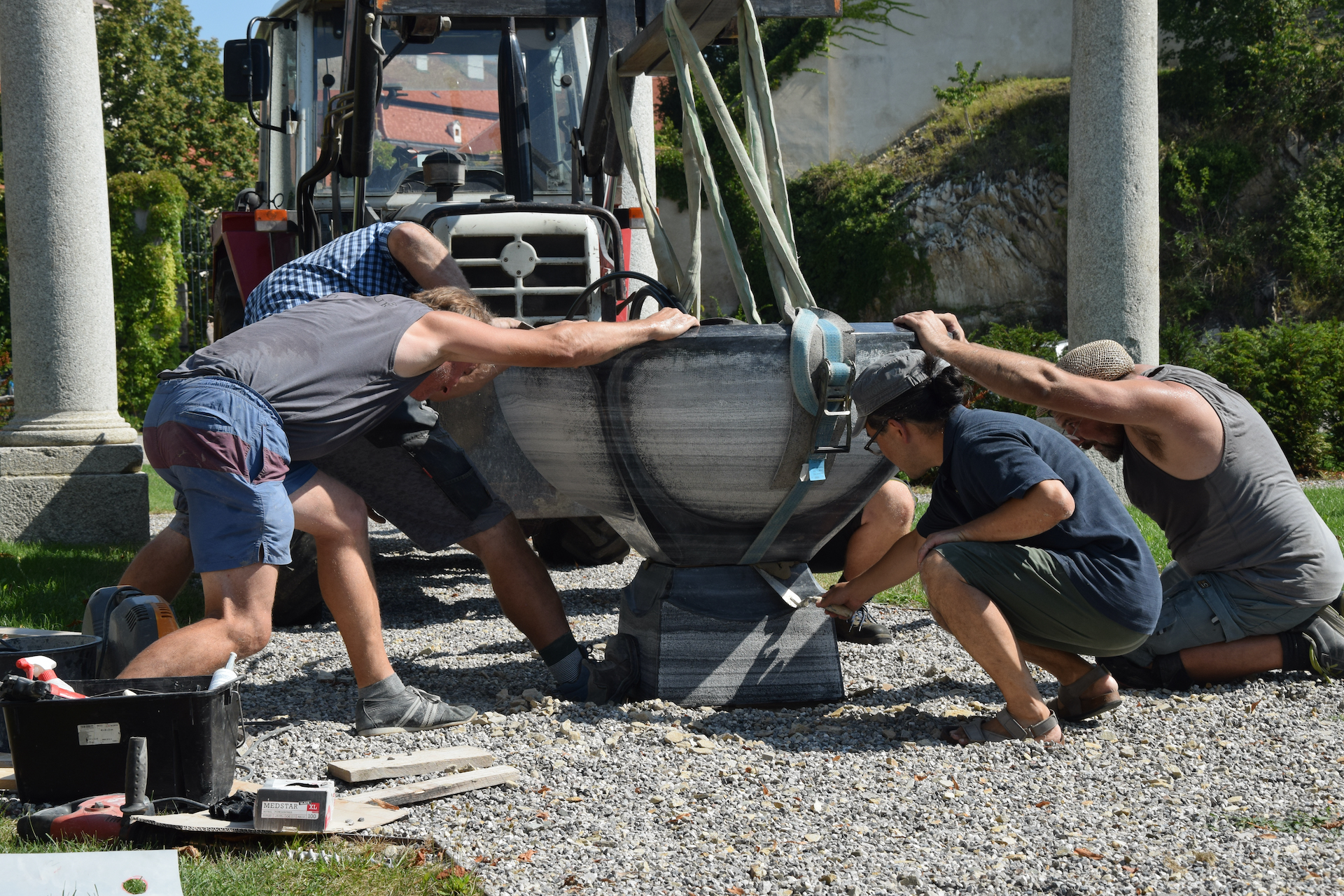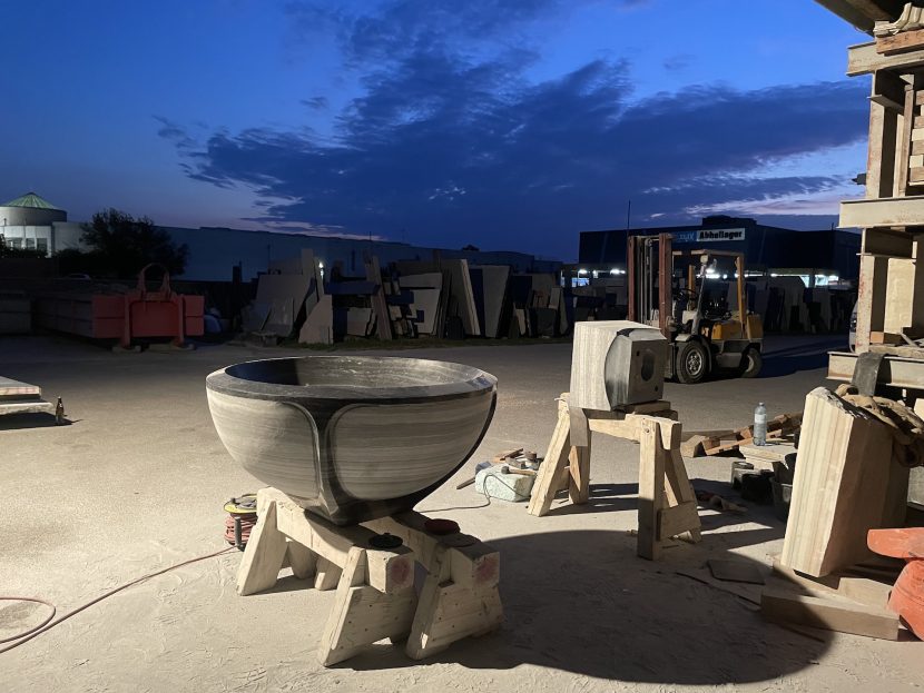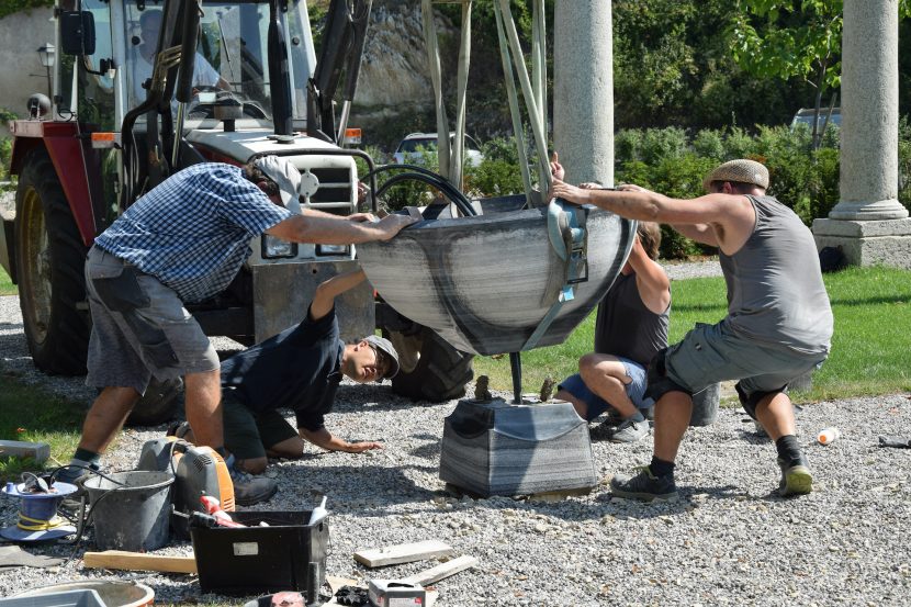 Entwurf: Mag.art.Luka Arafune, Ausführung: Mag.art.Franz Viehauser, Zusammenarbeit mit: Steinmetz Gerald Karlovits/Logistik/Finalisierung/Transport und Montage. Der Brunnen ist aus Wachauer Marmor gefertigt. Aufstellungsort: Stift Göttweig im „Garten der Stille“.